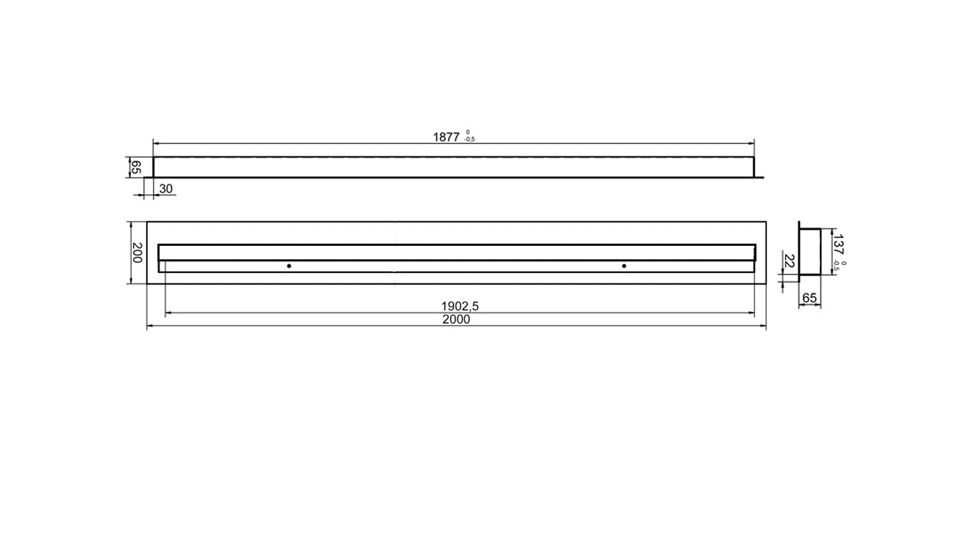 Nominal dimensions: (W x D x H) 2000 x 200 x 72 mm