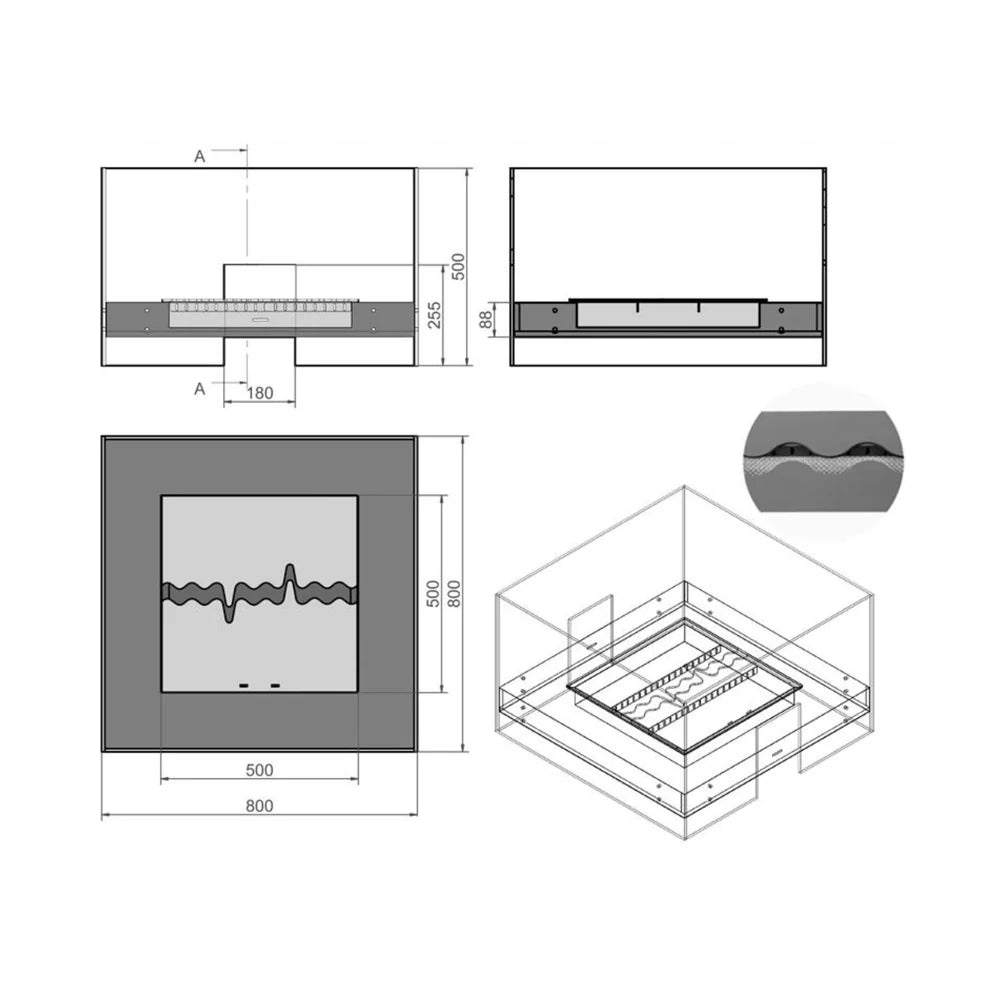 Biofireplace housing Tempered glass with a thickness of 8 mm, secured on all sides of the insert base with stainless steel screws