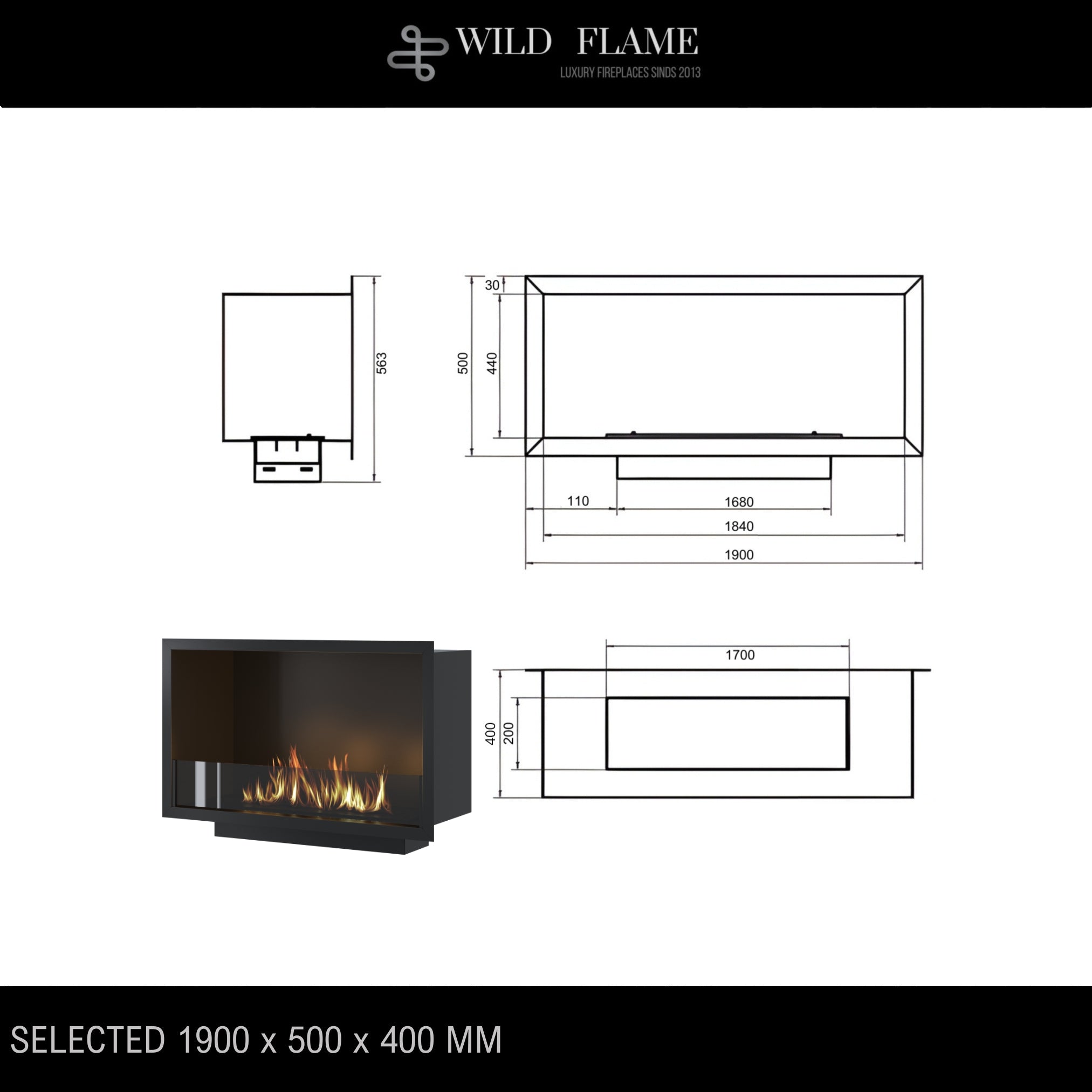 Selected Enkelzijdige Inbouwhaard 190 cm