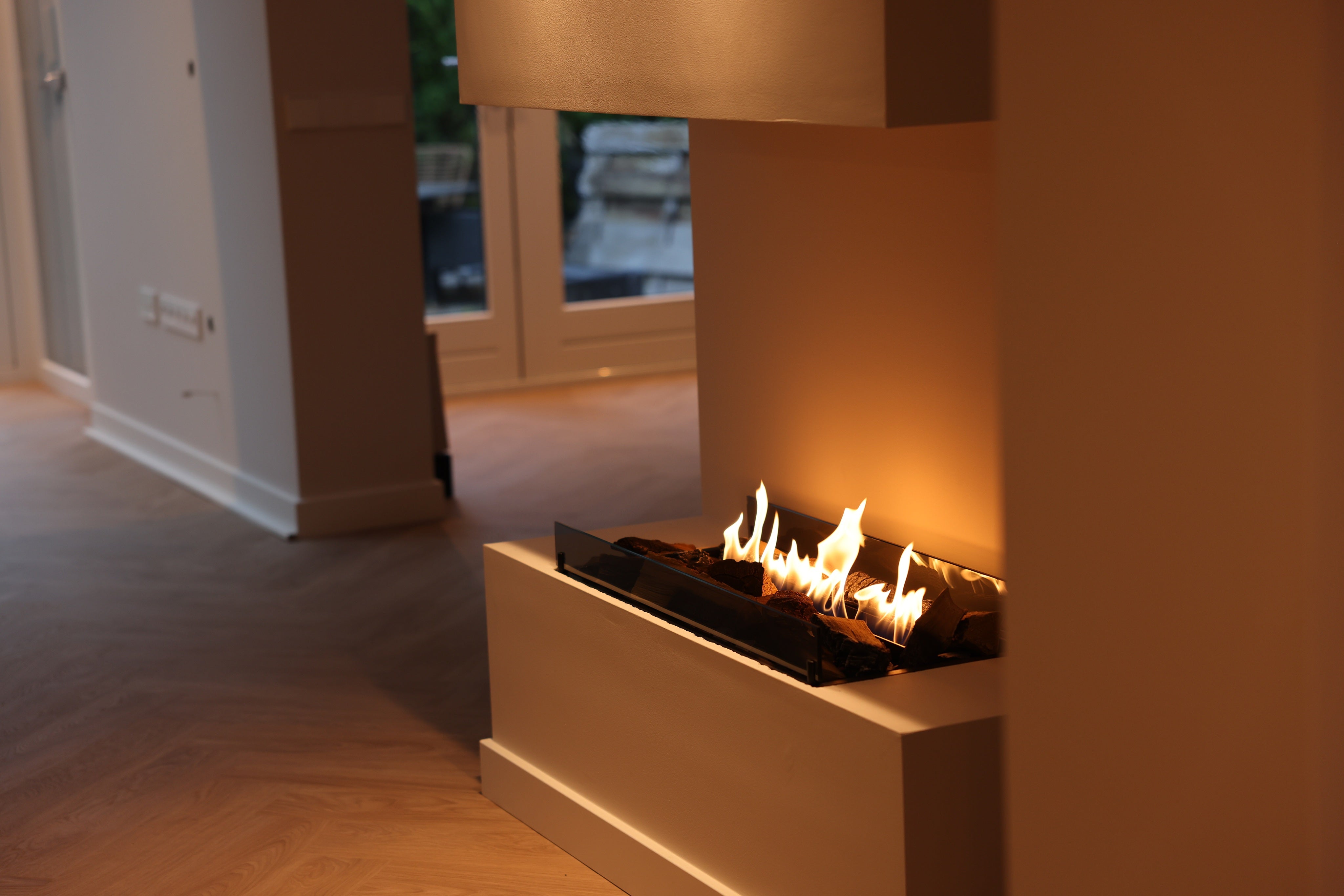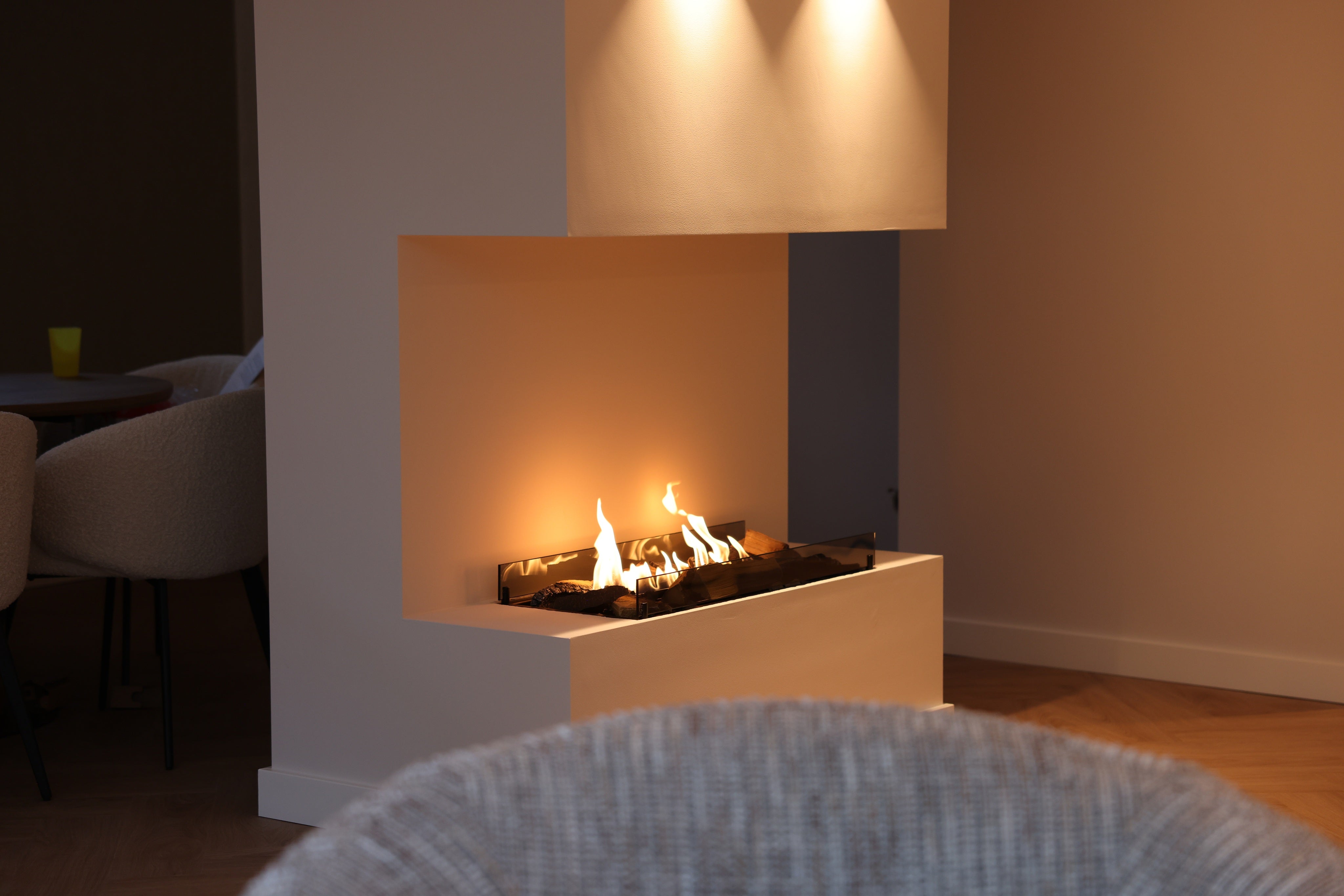 De SMART FIRE A6 is niet zomaar een haard; het is een meesterwerk van moderne technologie en ingewikkelde esthetiek. Dit unieke model vormt de charme van een traditionele open haard met de voordelen van bio-ethanol, waardoor het een milieuvriendelijke keuze is voor het hedendaagse interieur. De haard is bekleed met duurzame, handgemaakte keramische houtblokken die haast niet te onderscheiden zijn van echte houtblokken. Binnen de brander zorgen decoratieve chips voor een elegante uitstraling, volledig bedekt met deze luxe elementen. Dit ontwerp maakt de SMART FIRE A6 niet alleen een bron van warmte, maar ook een stijlvol middelpunt in elke ruimte. Een van de opvallende kenmerken is het voorzichtig getinte glas aan beide zijden van de brander. Met magnetische glashouders kan het glas eenvoudig worden verwijderd en opnieuw bevestigd, afhankelijk van uw voorkeur. Dit biedt flexibiliteit en veiligheid in gebruik. De brander, met zijn grotere tankinhoud, biedt wel brandtijd 10 uur op de laagste stand. Brandstofdampen worden automatisch naar de brander geleid, wat zorgt voor een consument en voortdurende verbranding. Met de genoemde mobile app kunt u de haard gemakkelijk aan- en uitzetten zonder direct contact met de vlammen. Kies tussen de hoge en ecologische 10 vlammenstanden, afhankelijk van uw behoefte aan warmte en sfeer. Deze functies maken de SMART FIRE A6 tot een zuinige en gebruiksvriendelijke optie voor elke huiskamer.