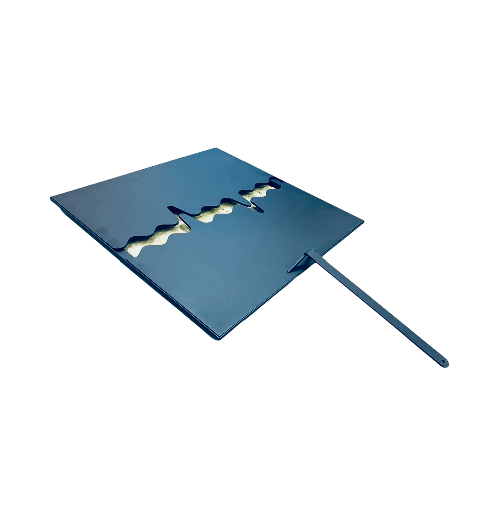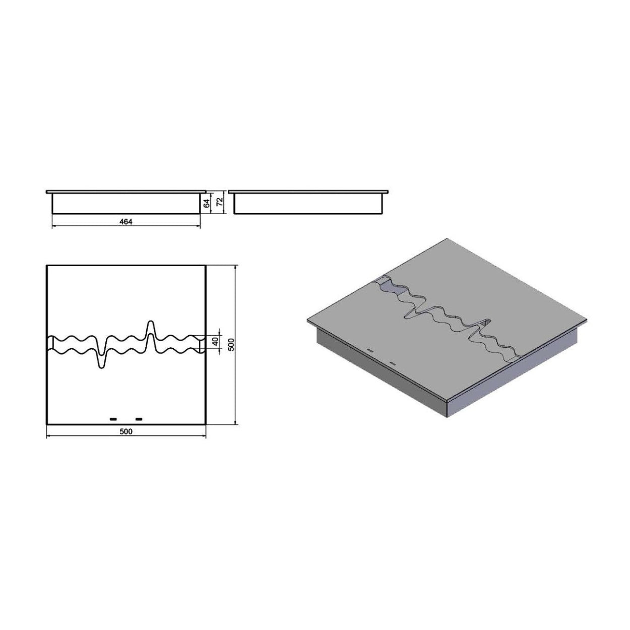 Burner cover: thickness and material 5 mm, powder-coated steel with black heat-resistant semi-matt lacquer.