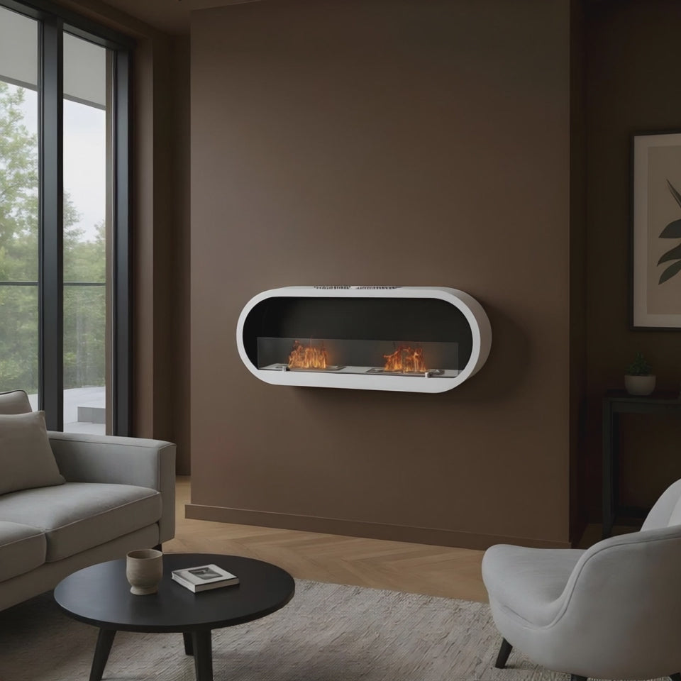 Het grote voordeel van Bellen is het vermogen om zich aan te passen aan de omgeving: hij kan op de grond worden geplaatst dankzij de antislipvoetjes, maar kan ook aan de muur worden geplaatst dankzij de meegeleverde muurbevestigingen. We zijn dus bezig met een twee-in-één-product, dat mensen zal aanspreken die graag hun interieur vaak veranderen. Stilistisch gezien is Bellen anders dan alle andere ethanolhaarden: de grote breedte van 100 cm contrasteert goed met de kleine hoogte, terwijl de zijkanten volledig afgerond zijn. Door zijn unieke uitstraling past hij in een vrij modern interieur. We kunnen ons voorstellen dat een model uitgerust met twee branders krachtig zal zijn qua verwarming: dit is bij Bellen het geval. Het bevat twee enkelwandige branders van elk 1,3 liter, die in totaal 4.800 watt verwarmt.