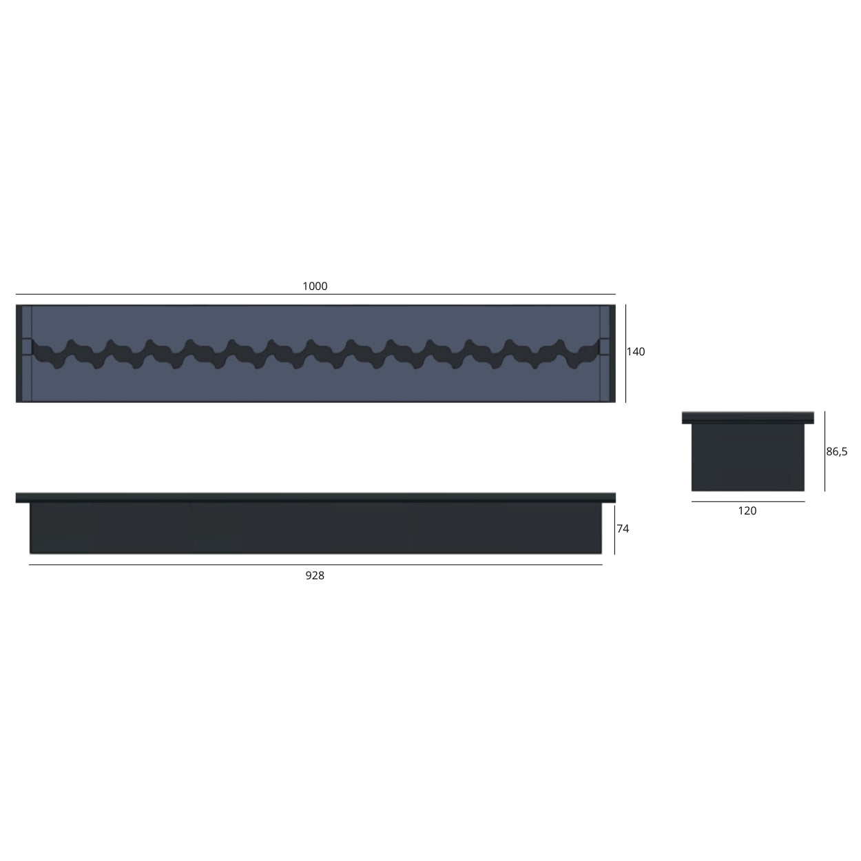 Afmetingen: 1000 x 140 x 86 mm - instelbaar ( Mogelijkheid om afmetingen aan te passen )