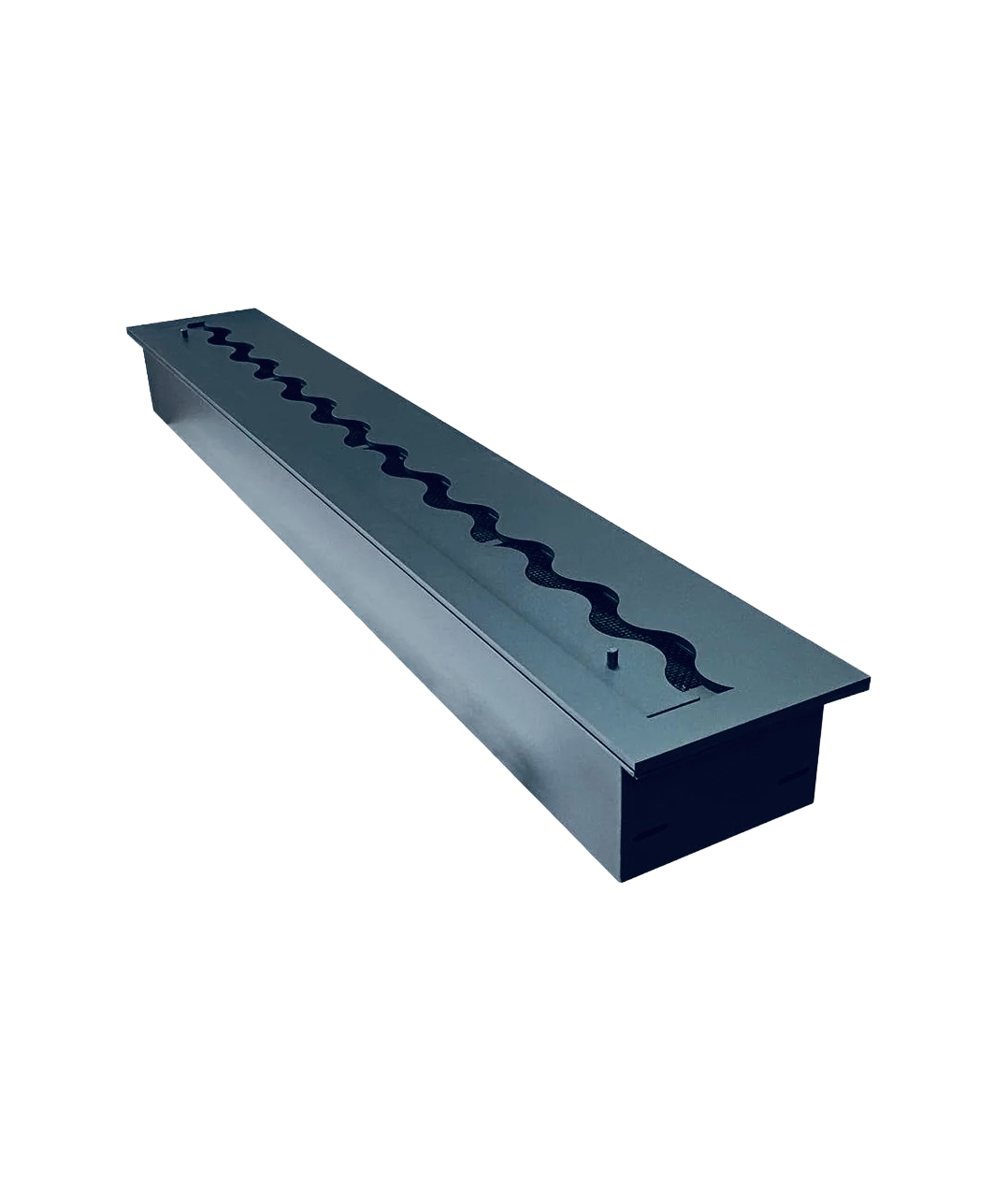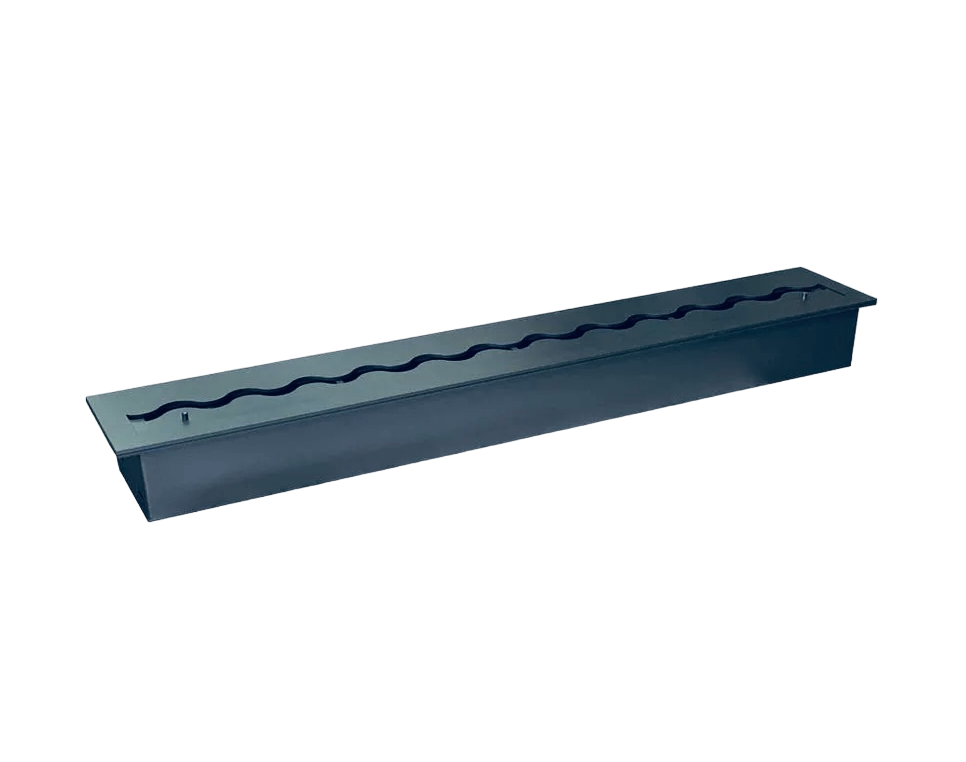 Een moderne inzetbrander voor een inbouwhaard met een karakteristieke, innovatieve golfvormige WAVE vuurlijn geproduceerd door KAMI, die de vlam dynamischer en ruimtelijker maakt. Het bio ethanol brander inzetstuk voor de inbouwhaard is gemaakt van hoogwaardig 1,5 mm dik staal, gepoedercoat met een hittebestendige zwarte semi-matte lak. Het deksel van het inzetstuk bestaat uit twee delen - het is een nauwkeurig laser gesneden element van plaatstaal met een dikte van 5 mm, ook beschermd met dezelfde hittebestendige verf als het frame. Hierdoor is het onderdeel dat het meest opwarmt door vuur beschermd tegen eventuele vervormingen en behoudt het volledig zijn oorspronkelijke vorm. De perfecte pasvorm van de rand van het deksel garandeert een nauwkeurige regeling van de grootte vlammen en een snelle en gemakkelijke blussing.