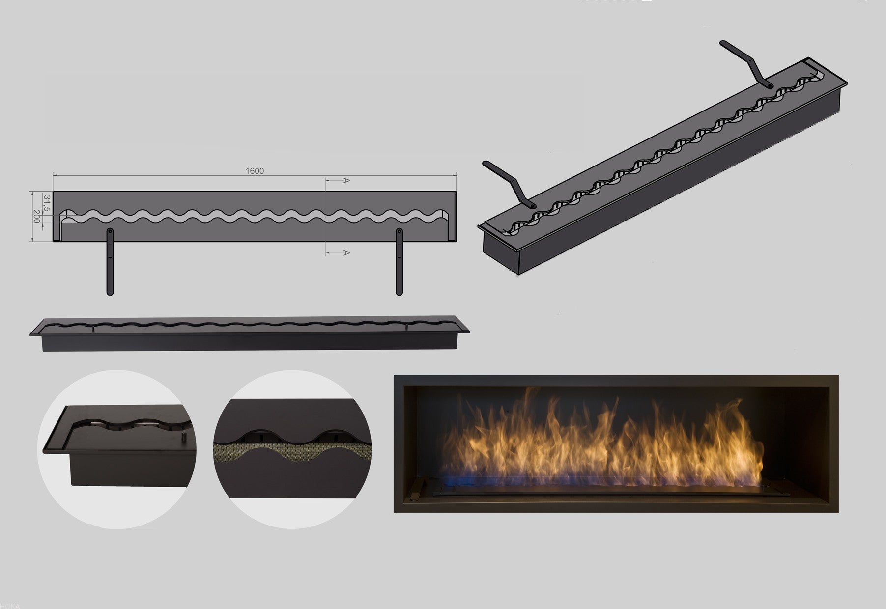 Een moderne inzetbrander voor een inbouwhaard met een karakteristieke, innovatieve golfvormige WAVE vuurlijn geproduceerd door KAMI, die de vlam dynamischer en ruimtelijker maakt. Het bio ethanol brander inzetstuk voor de inbouwhaard is gemaakt van hoogwaardig 1,5 mm dik staal, gepoedercoat met een hittebestendige zwarte semi-matte lak. Het deksel van het inzetstuk bestaat uit twee delen - het is een nauwkeurig laser gesneden element van plaatstaal met een dikte van 5 mm, ook beschermd met dezelfde hittebestendige verf als het frame. Hierdoor is het onderdeel dat het meest opwarmt door vuur beschermd tegen eventuele vervormingen en behoudt het volledig zijn oorspronkelijke vorm. De perfecte pasvorm van de rand van het deksel garandeert een nauwkeurige regeling van de grootte vlammen en een snelle en gemakkelijke blussing.