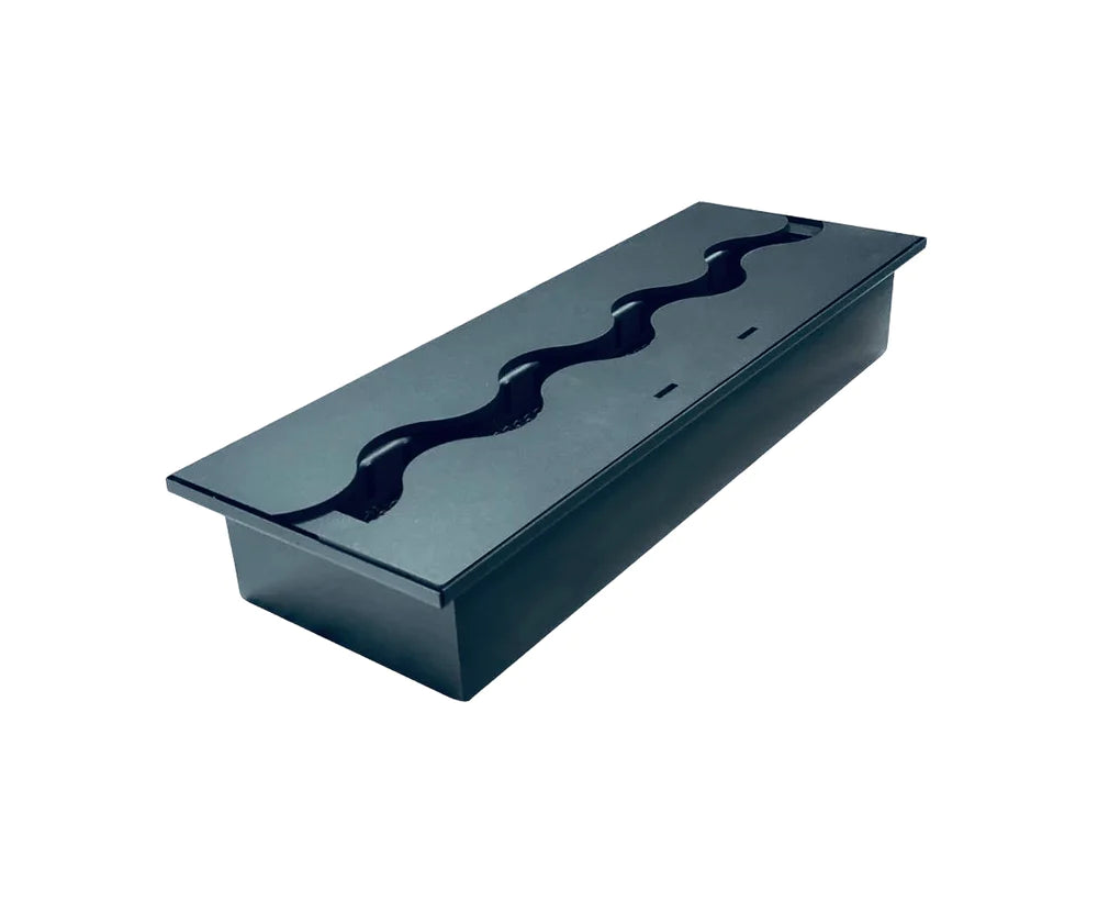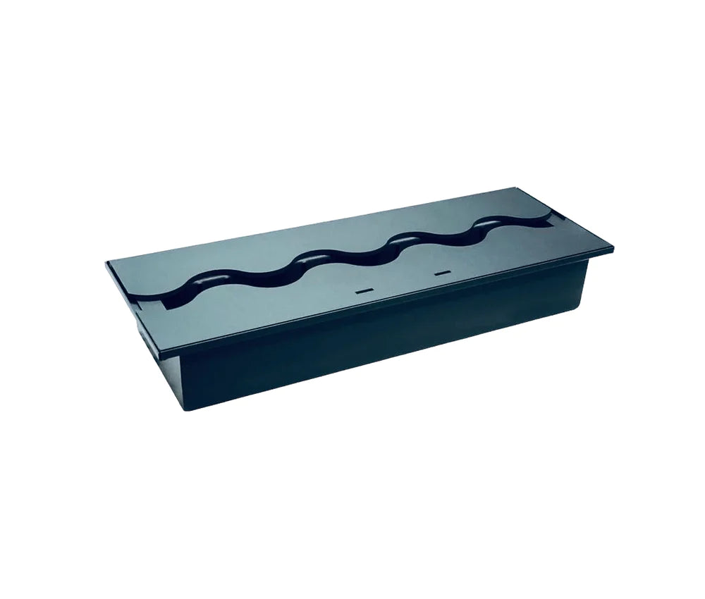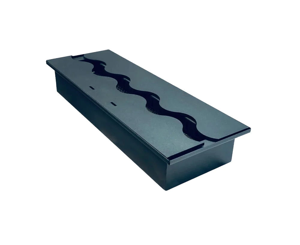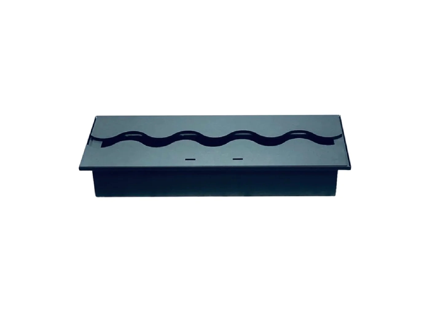 Een moderne inzetbrander voor een inbouwhaard met een karakteristieke, innovatieve golfvormige WAVE vuurlijn geproduceerd door KAMI, die de vlam dynamischer en ruimtelijker maakt. Het bio ethanol brander inzetstuk voor de inbouwhaard is gemaakt van hoogwaardig 1,5 mm dik staal, gepoedercoat met een hittebestendige zwarte semi-matte lak. Het deksel van het inzetstuk bestaat uit twee delen - het is een nauwkeurig laser gesneden element van plaatstaal met een dikte van 5 mm, ook beschermd met dezelfde hittebestendige verf als het frame. Hierdoor is het onderdeel dat het meest opwarmt door vuur beschermd tegen eventuele vervormingen en behoudt het volledig zijn oorspronkelijke vorm. De perfecte pasvorm van de rand van het deksel garandeert een nauwkeurige regeling van de grootte vlammen en een snelle en gemakkelijke blussing.