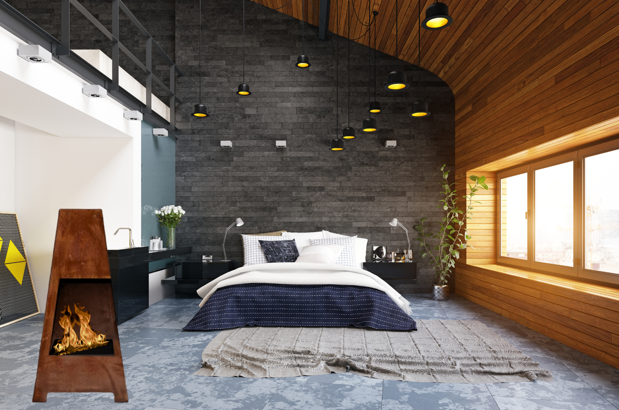 De VIORO bio ethanol vrijstaande haard is een perfecte combinatie van een minimalistische vorm en eenvoudige decoraties. Zo'n ascetische benadering maakte de implementatie van een haard mogelijk, wat de essentie is van elegantie en goede smaak. Het moderne roest design en de adel van staal zorgen ervoor dat het perfect past bij een minder sober interieur en warme kleuren van muren, decorelementen en decoraties, en het zal ook perfect zijn voor een tuin of terras.